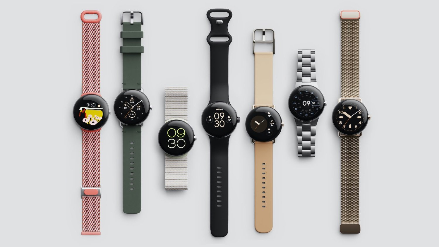 Хоча годинник представлений тільки в одному розмірі, ремінці для нього можуть бути різної довжини: з позначення «великий» (для зап'ястя діаметром 162-210 мм) та «малий» (130-175 мм). В коробці з Pixel Watch постачається Active ремінець, який зроблений з фтороеластомера з покриттям soft-touch, одразу у двох розмірах. Система фіксації ремінців власного дизайну Google не дозволить використовувати звичайні ремінці, і навряд чи перший час буде великий вибір сторонніх рішень, як це зараз є для Apple Watch.