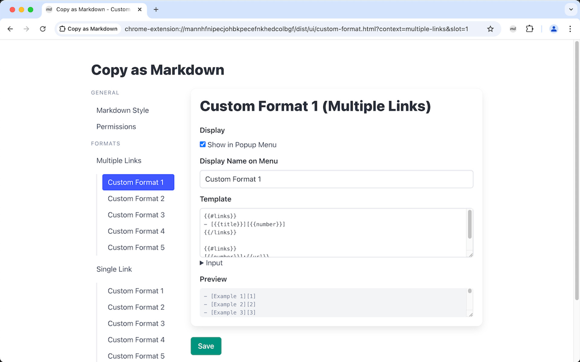 Перетворює текст, посилання або зображення з вебсторінок у формат Markdown — включаючи списки, таблиці й код-блоки. Це дозволяє легко редагувати текст, не порушуючи його структуру. Чудово підходить для блогерів, програмістів та користувачів Obsidian або Joplin.