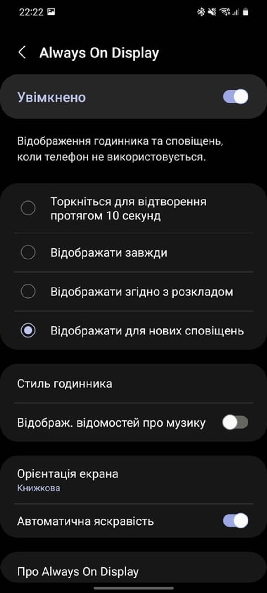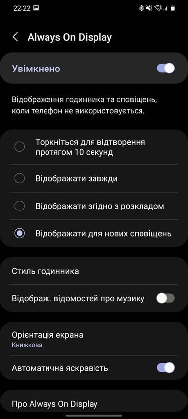 10. Активація режиму AlwaysOnDisplay при вхідному сповіщенні