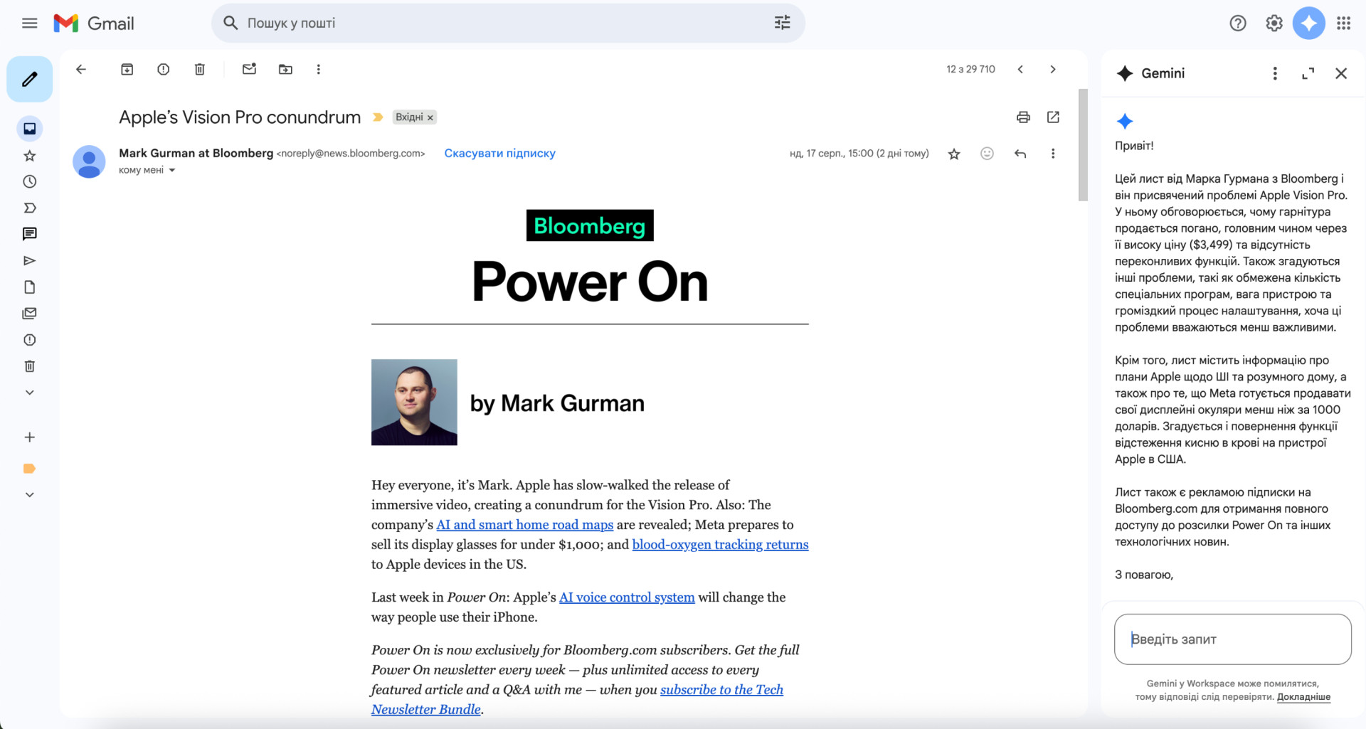 Gmail і Google Workspace: ШІ як секретар і редактор