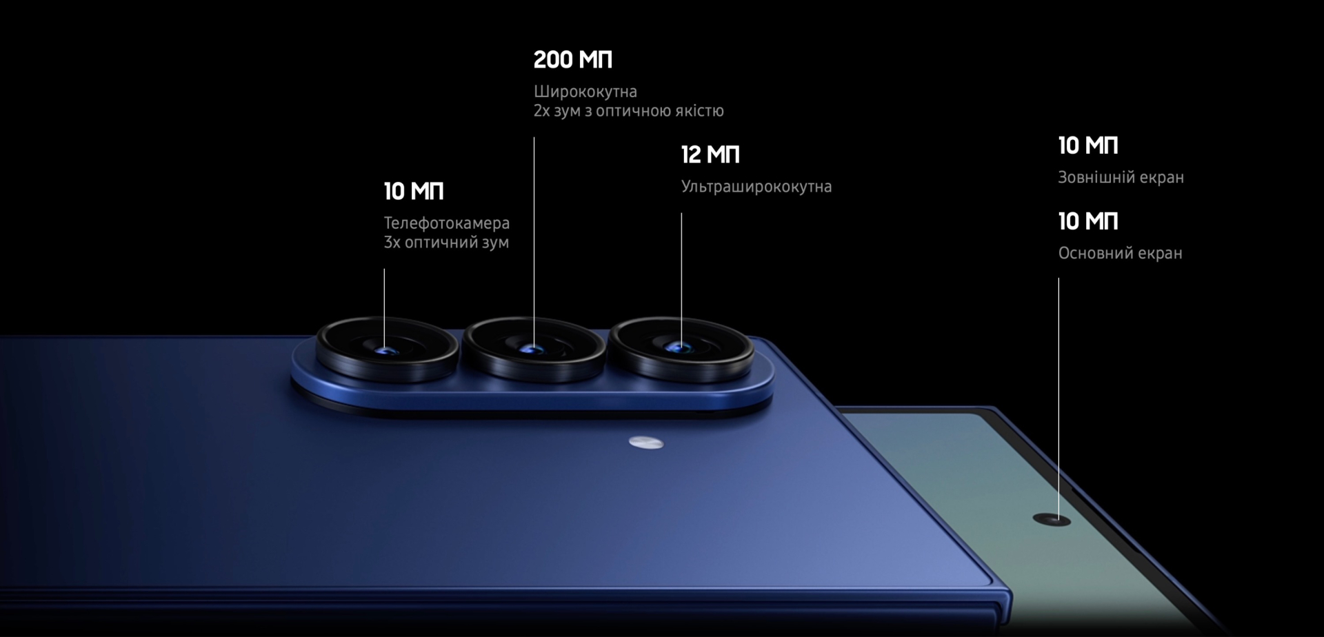 З новим процесором Galaxy Fold7 заразом покращив можливості з’єднання Wi-Fi 7 та Bluetooth 5.4. Опції накопичувачів так і варіюються від 256 ГБ до 1 ТБ UFS 4.0, однак з топовим варіантом тепер не 12 ГБ оперативної пам’яті, а 16. Дрібничка, але приємно (для порівняння, Galaxy S25 Ultra має варіанти 1 ТБ накопичувача як з 12, так і 16 ГБ ОЗП, а попередні Fold в принципі не пропонували 16 ГБ).