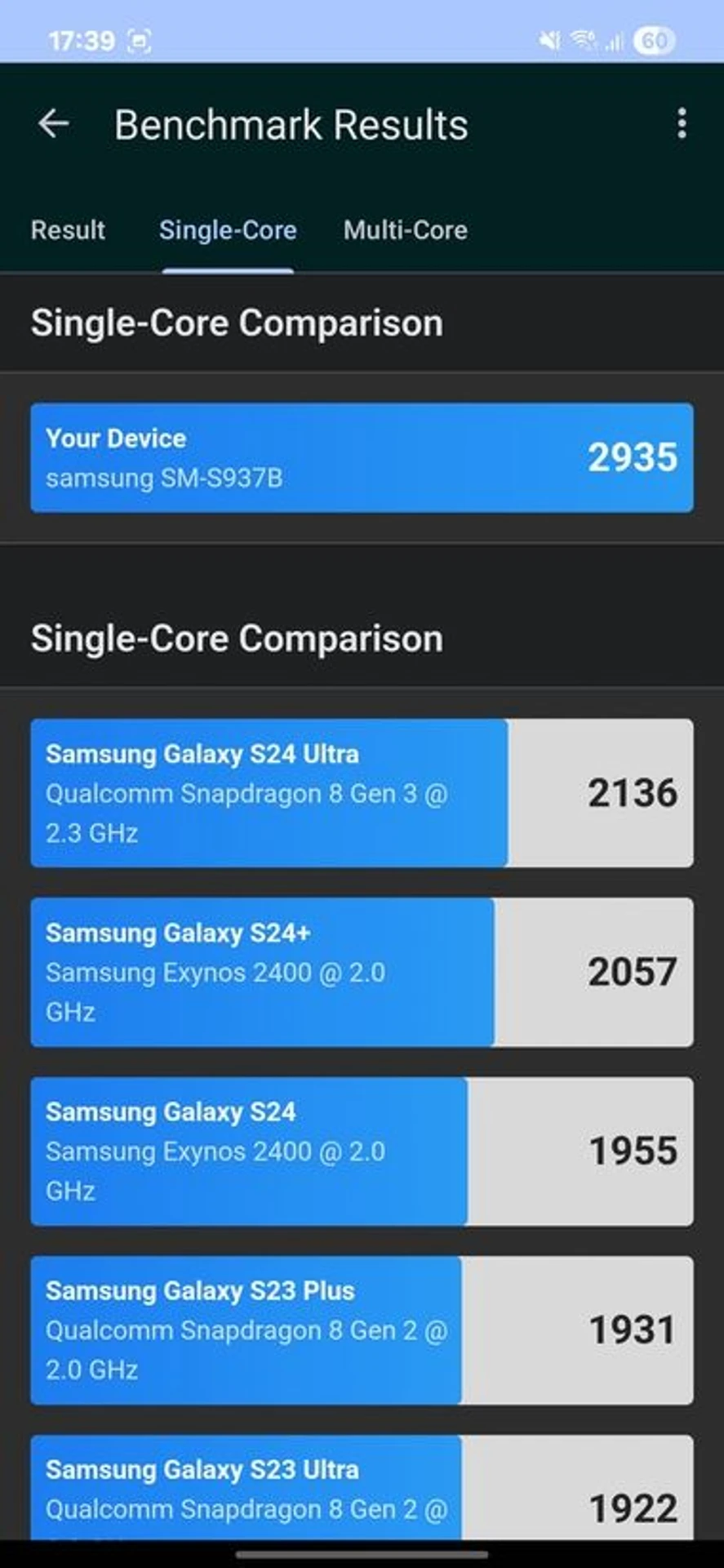 Why almost? The thickness of the case imposes its own limitations in terms of heating, which in turn forces the system to maintain lower frequencies under long-term load. So, if we take purely synthetic tests, neither Geekbench 6 nor PCMark 10 show any significant lag behind the Galaxy S25 Ultra.