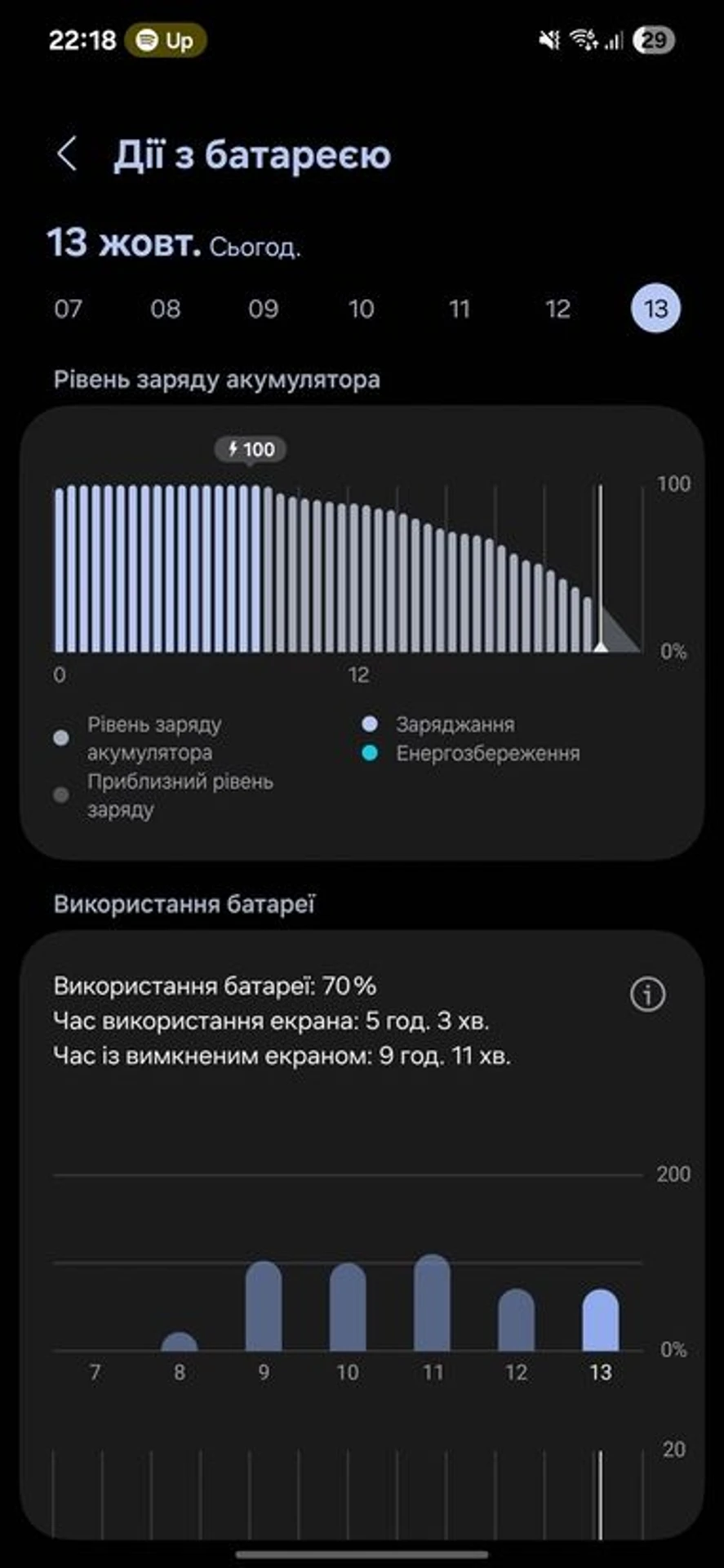 On average, I took it off the charger at 8 a.m., and after a day of fairly active use with the screen on for 5 hours until 10 p.m., I still had almost 30% battery life left. The smartphone could discharge faster when, for example, I went for a walk in the park and took about 50 photos, or spent 30-40 minutes on a video call in Google Meet. On such days, the number of hours of active screen time could be less — 4 or 4.5 — but by 10 p.m., the battery charge still remained at 20%. Considering that I could recharge the phone in the car when I was driving somewhere on business, and that I could recharge it at home or in the office even during power outages, I generally did not experience any discomfort due to the Galaxy S25 Edge's battery life. The device can provide a typical day's use. However, if you put the S25 Edge under more serious load, for example, playing games for several hours, it will definitely run out of power before the end of the day, and you will remember Samsung's engineers with a kind word.