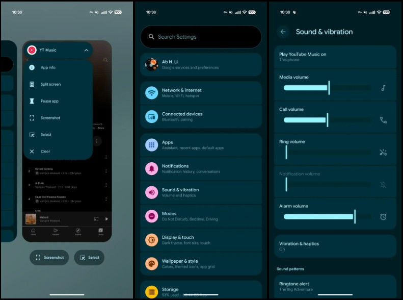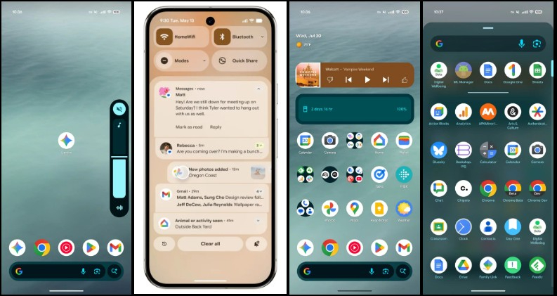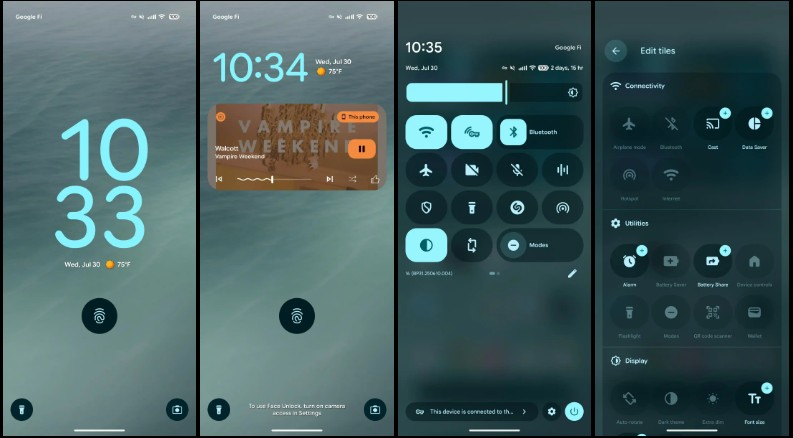 Серед змін — оновлений екран блокування, де дата, день тижня та погода тепер розташовані під великим годинником або праворуч від нього, а також перероблені іконки статус‑бара з новим порядком Wi‑Fi та мобільного сигналу. Панель швидких налаштувань отримала можливість змінювати розмір плиток і відображати до 16 елементів на сторінці, а кнопки Bluetooth та режимів тепер можна швидко вмикати/вимикати свайпами.