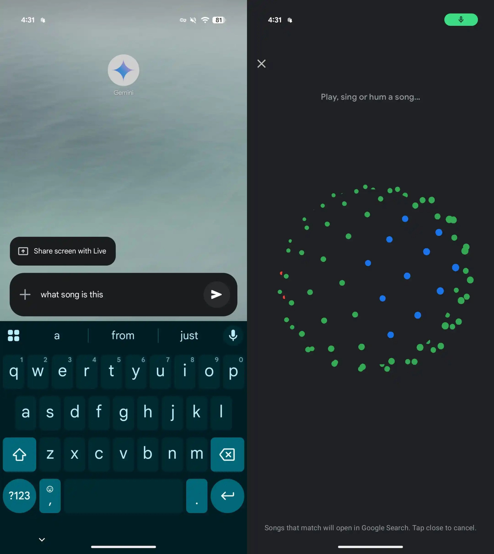 Раніше цю функцію забезпечував Google Assistant, але після переходу на Gemini доступ до пошуку пісень став складнішим, та користувачам доводилось додавати ярлик на головний екран, або вмикати її через налаштування.
