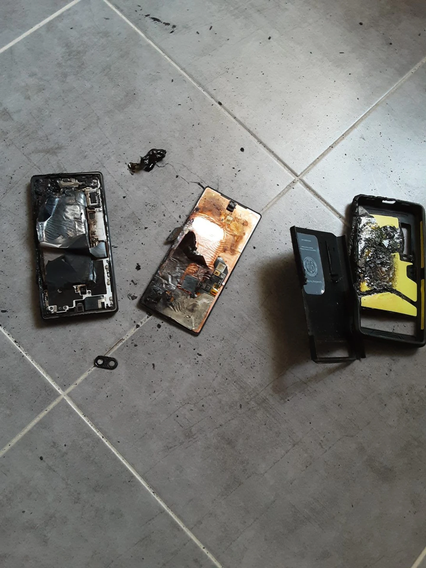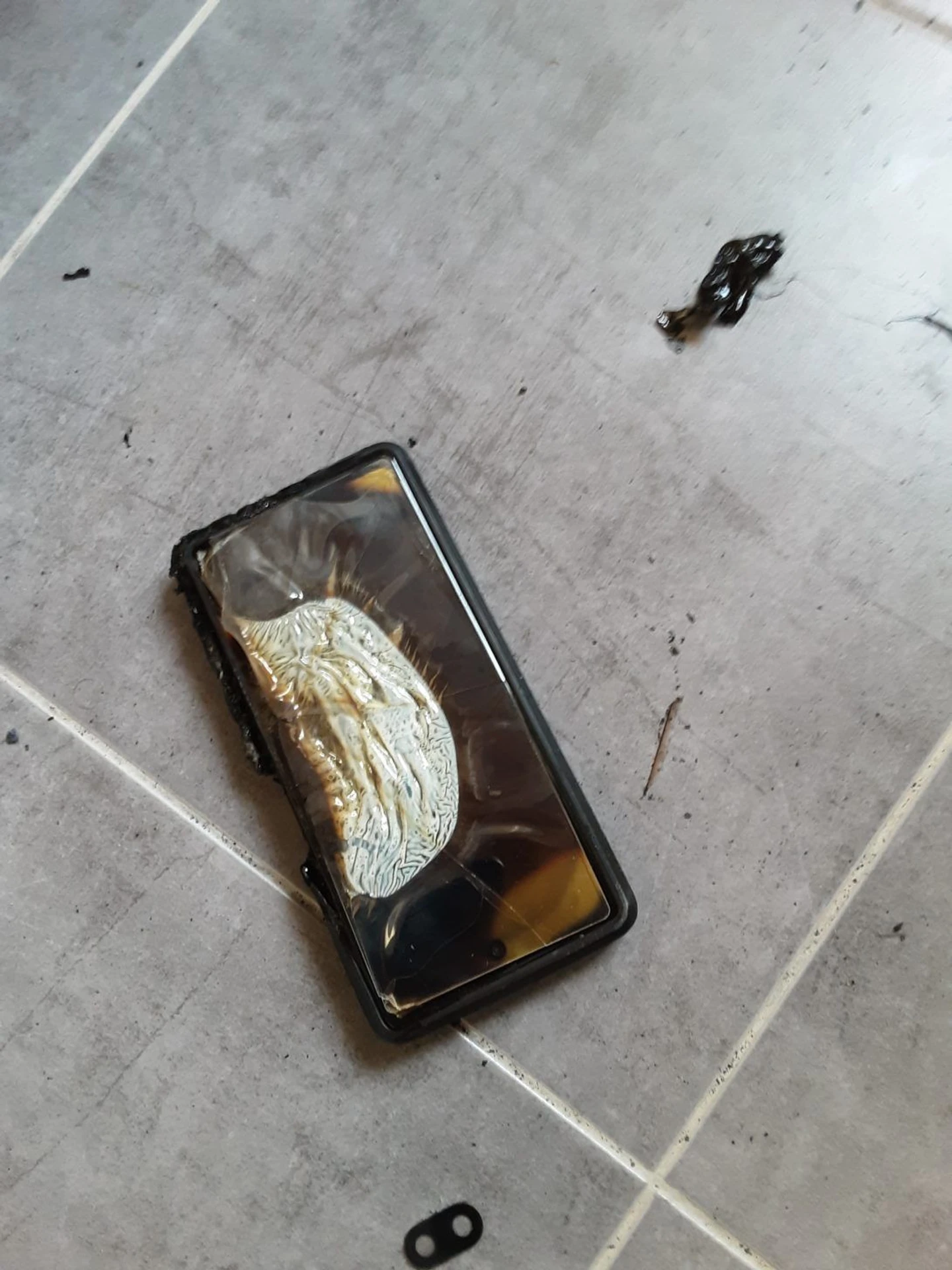За словами власника, смартфон лежав на тумбочці менш ніж за 40 см від його голови, коли раптово вибухнув із гучним звуком і різким запахом гару. Вибух спричинив пожежу на простирадлах та пошкодив підлоговий кондиціонер. Постраждалий зміг відкинути телефон на плитку, скориставшись зарядним кабелем, щоб зупинити розповсюдження вогню.