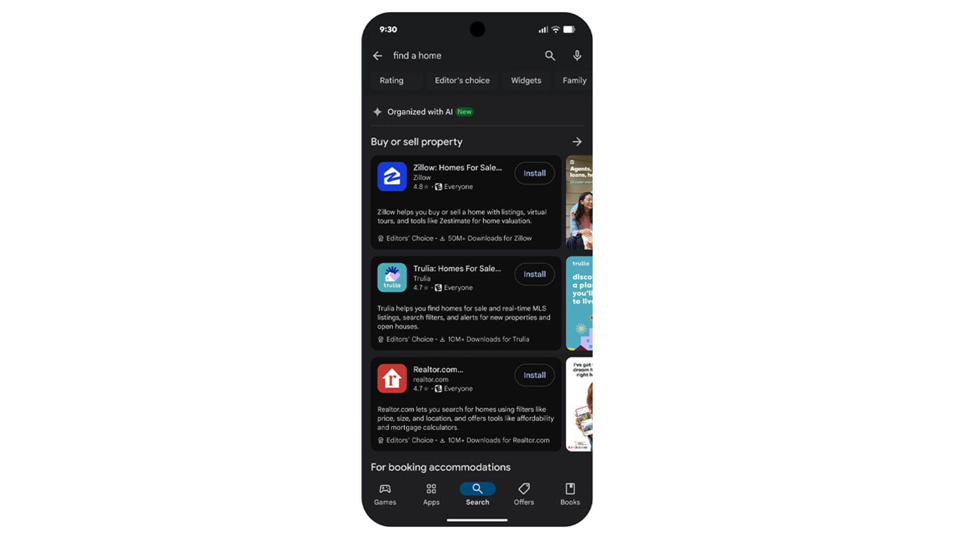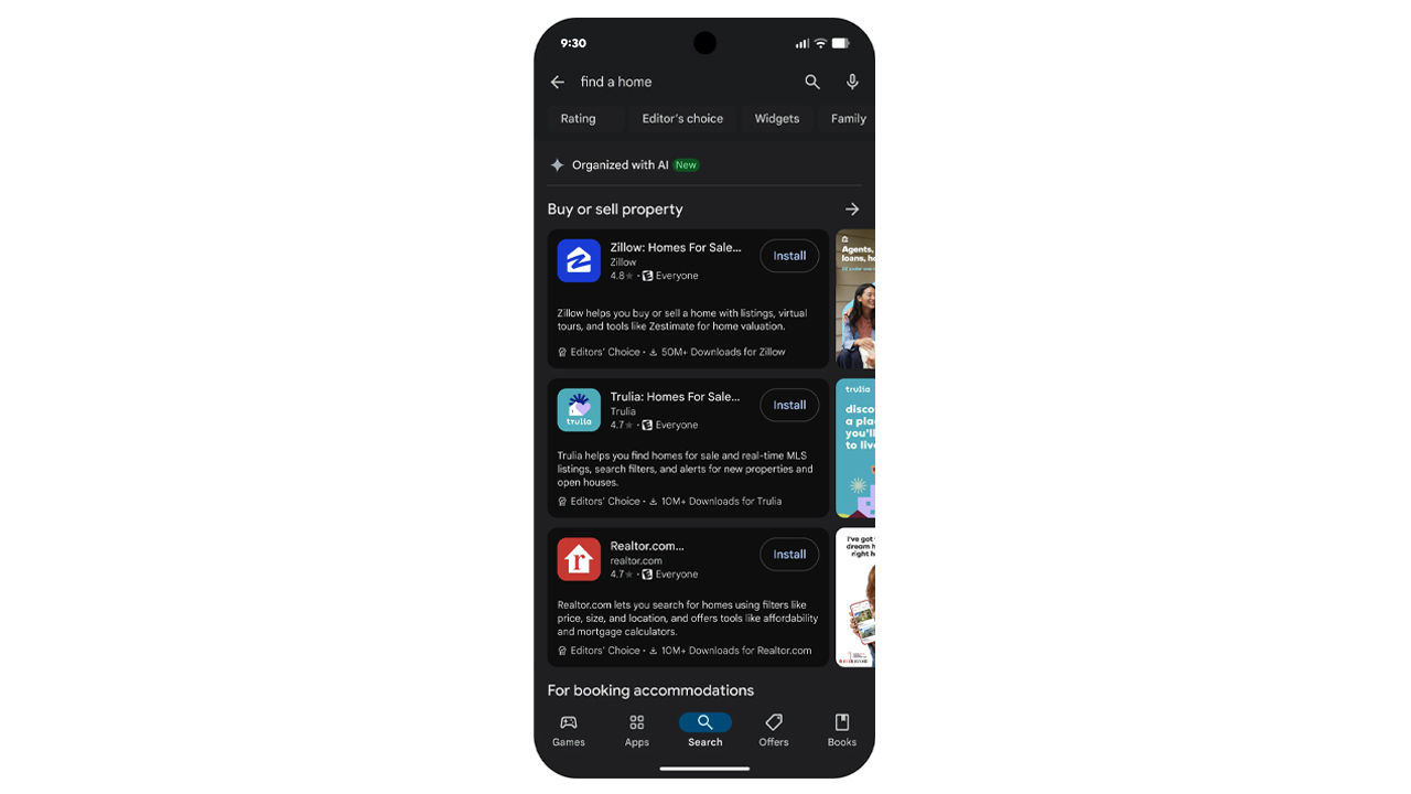 Заразом Google інтегрує штучний інтелект й у пошук додатків. Тепер можна буде вводити запити на кшталт "пошук житла", а ШІ пропонуватиме додатки, які допоможуть виконати цю задачу.