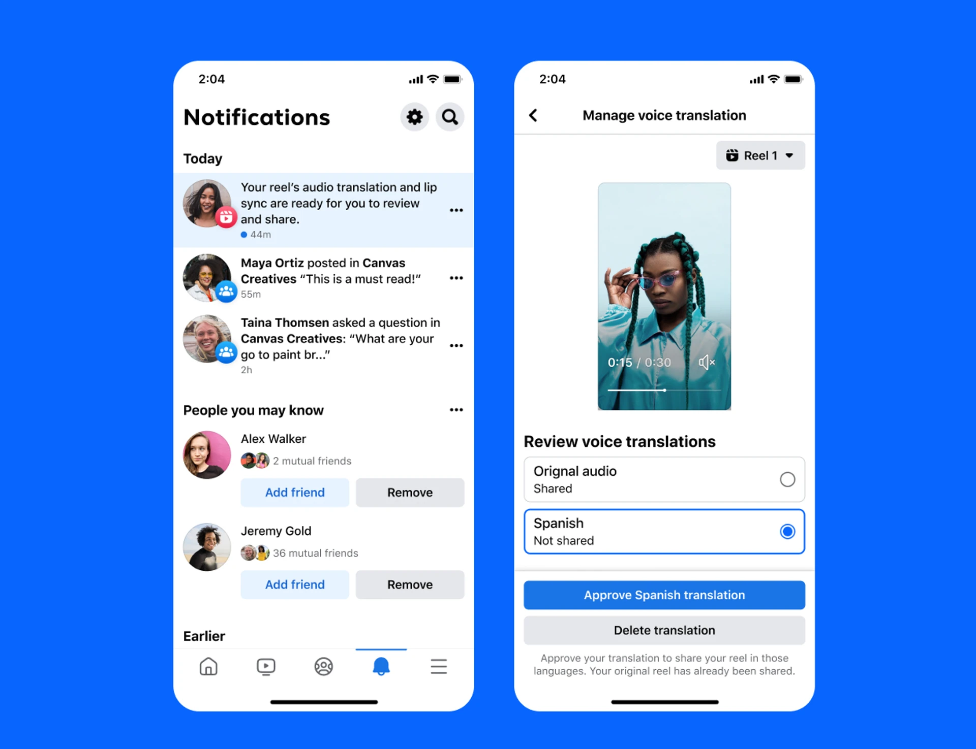 Компанія Meta повідомила про глобальний запуск нової функції голосового дубляжу для відео Reels. Технологія використовує генеративний ШІ для перекладу голосу користувача з додатковою синхронізацією руху губ.