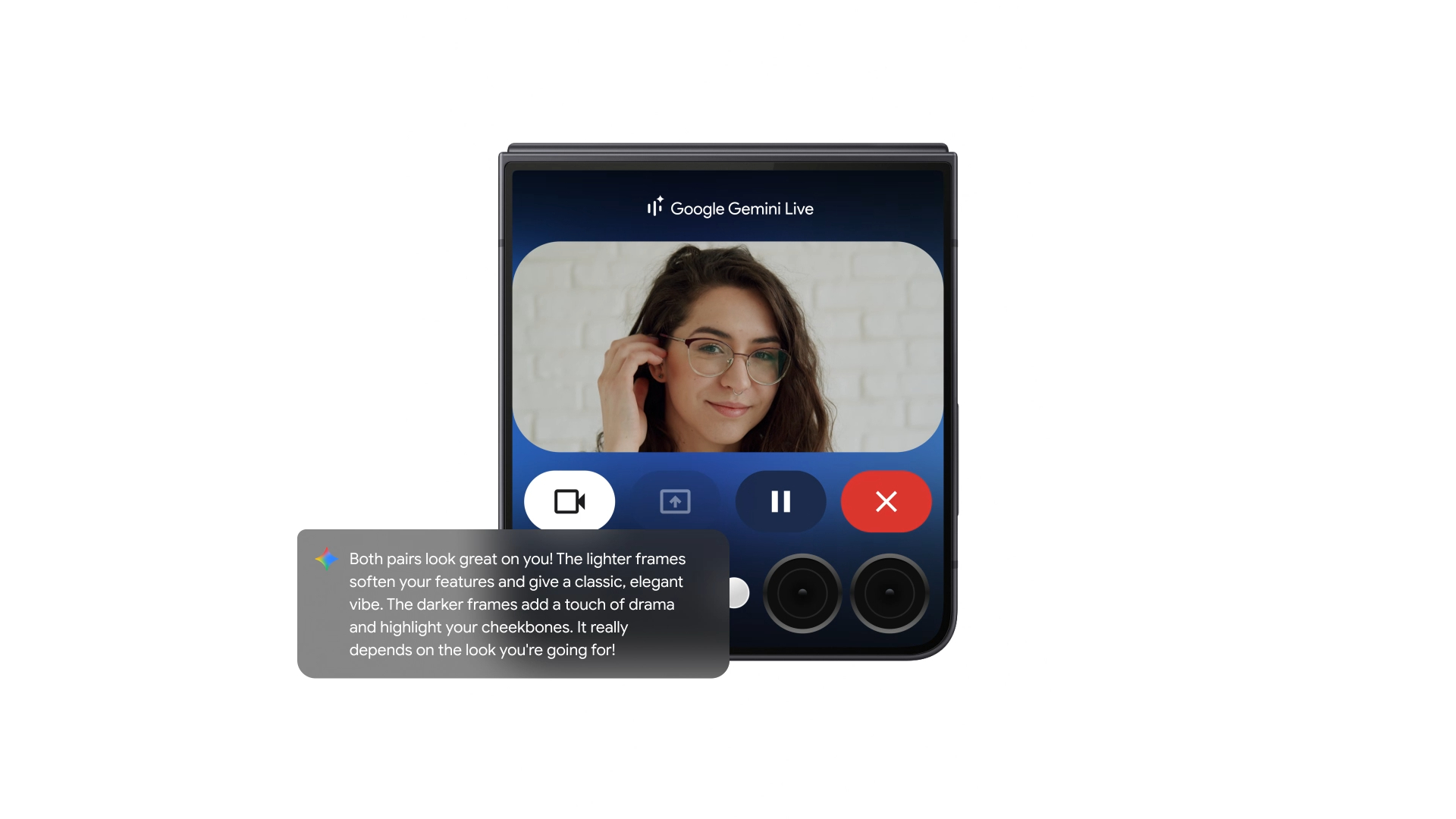 На новому Galaxy Flip7 користувачі зможуть ввімкнути режим прямого ефіру, натиснувши кнопку камери та обравши режим Flex. У цьому режимі смартфон зможе аналізувати оточення та давати поради, наприклад, зі стрижкою чи вправами йоги. Заразом зовнішній екран Flip7 можна буде використовувати аби швидко викликати Gemini Live, щоб отримати швидкі відповіді, наприклад, щодо вибору одягу чи аксесуарів, без потреби відкривати смартфон.