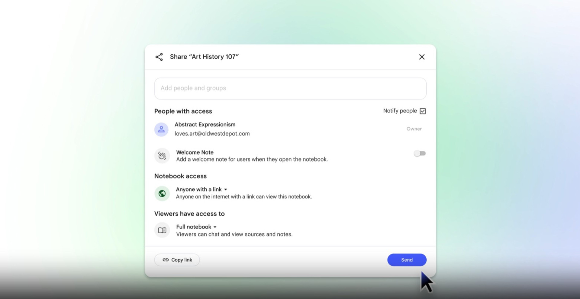 Google оновила NotebookLM, додавши можливість публічного доступу до нотаток. Тепер користувачі можуть ділитися своїми записами через посилання — переглядачі не зможуть редагувати вміст, але матимуть доступ до ШІ-підсумків, аудіооглядів і можливості ставити запитання.