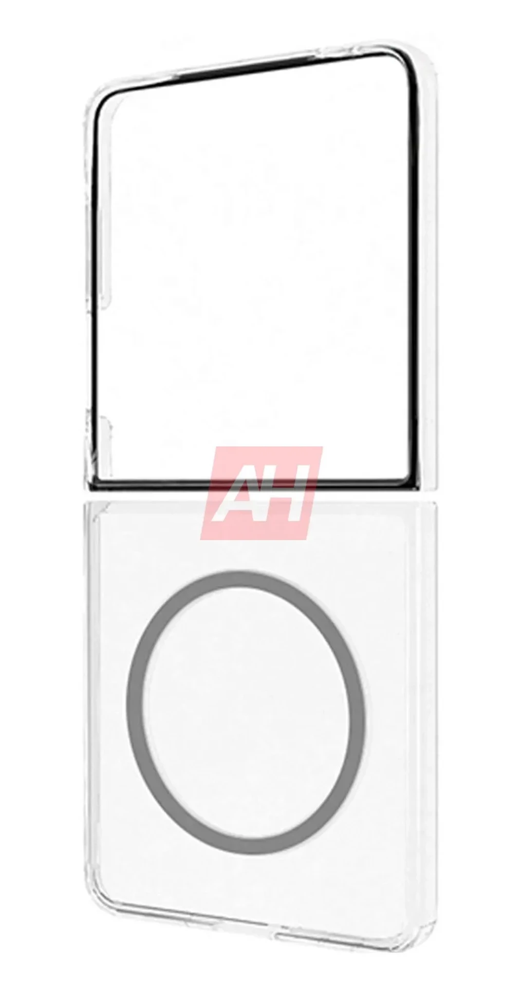 Прозорий чохол охоплює обидві половини смартфона, має виступ для захисту камер і виріз для кнопки живлення, яка одночасно є сканером відбитків. Також буде прозора версія з вбудованими магнітами, яка підтверджує, що сам пристрій не матиме магнітної підтримки.