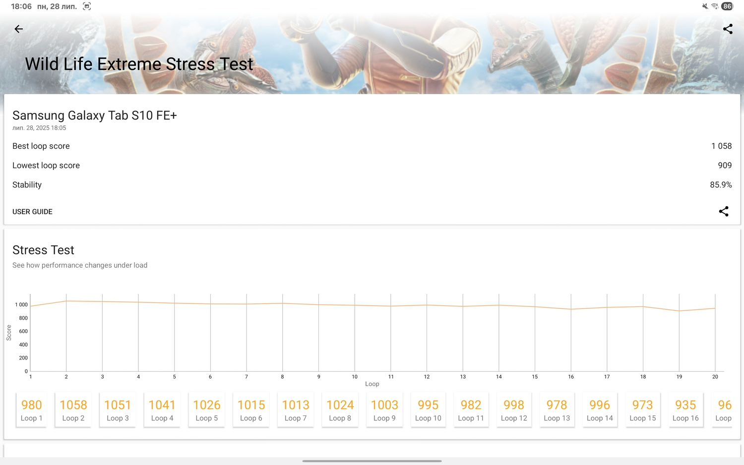 В меншій, порівняно з топовими планшетами Samsung, продуктивності є й свої плюси, Tab S10 не нагрівається під час роботи та демонструє високий рівень стабільності системи в стрес-тесті 3DMark.