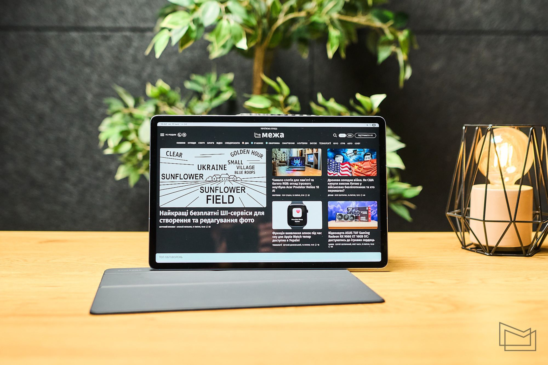 Ще одна особливість дисплея – співвідношення сторін 16:10. Планшет доволі витягнутий, тож в портретній орієнтації тримати його менш зручно, зате в альбомній він чудово підходить для відео та робочих задач з клавіатурою.
