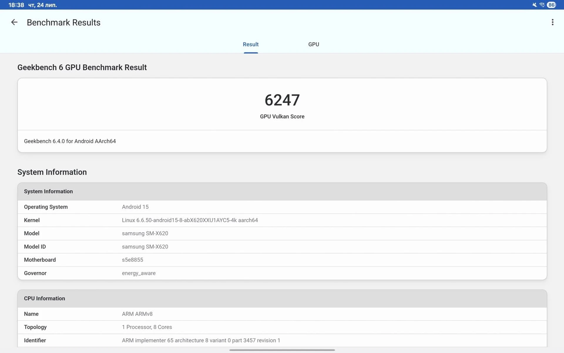 У Galaxy Tab S10 FE використовується нова для планшетів однокристальна система Exynos 1580, виробництва Samsung. Цей чип виготовлено по 4-нм техпроцесу і він розрахований на девайси середнього сегмента та раніше вже з’явився в смартфонах Galaxy A56. У порівнянні з Tab S9 FE з процесором Exynos 1380, вийшов приріст продуктивності приблизно на 30%, що доволі відчутно.