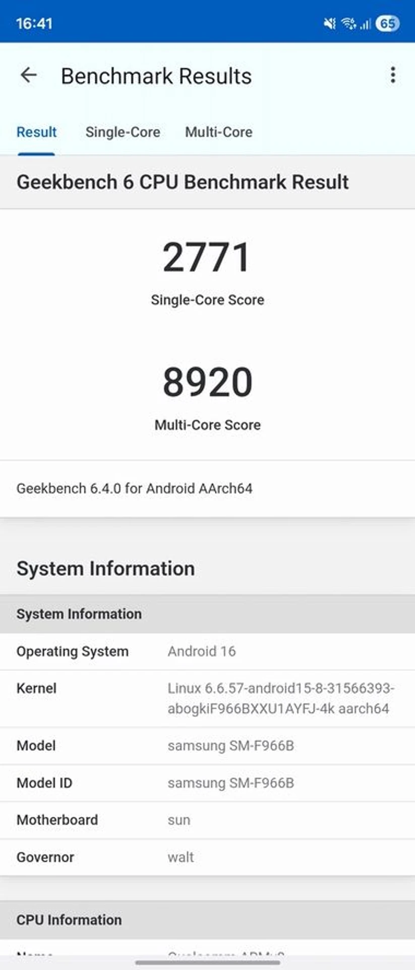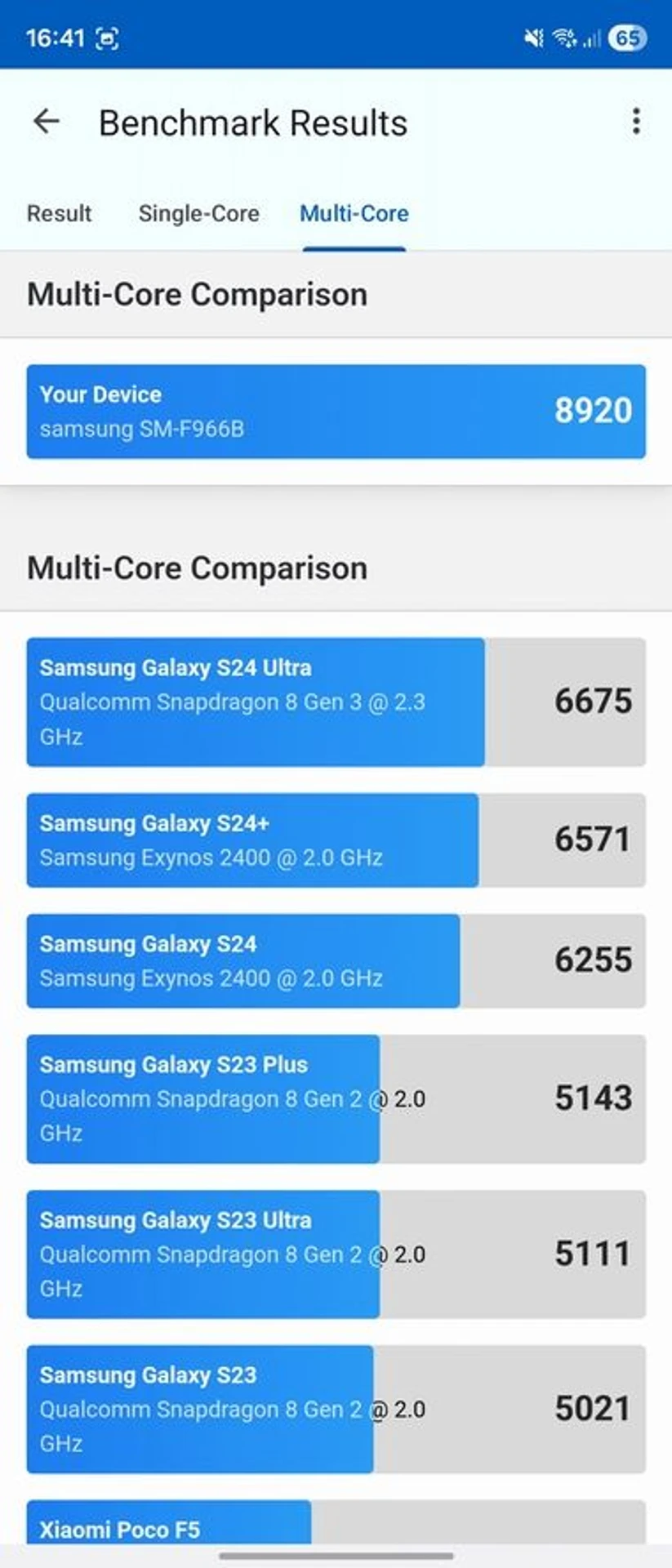 Коли Galaxy Fold7 закритий, на перший колах тесту він показує доволі високі результати, але потім процесор скидає частоти, і вже до останнього кола тесту продуктивність знижується, щоб уникнути перегріву. Температура процесора при цьому підіймається до 41 градусу Цельсія.