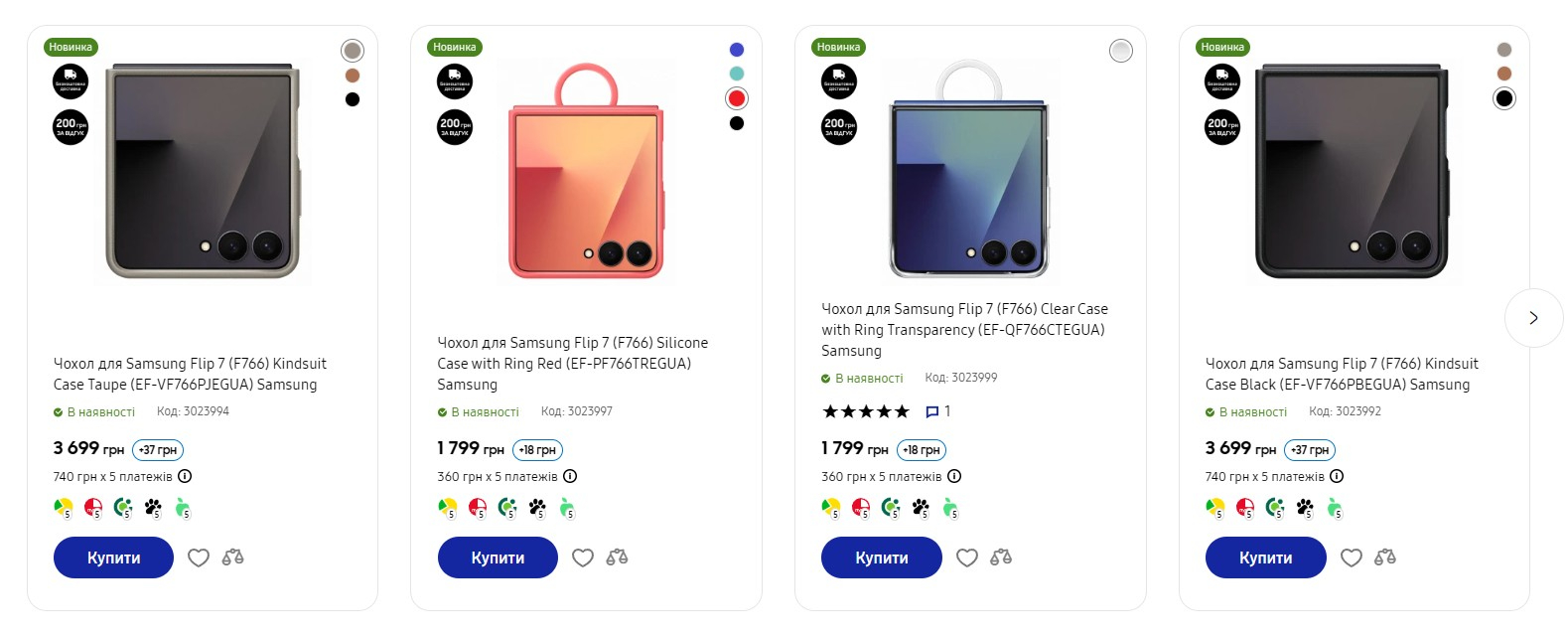 Зовнішні панелі Samsung Galaxy Flip7 зроблені з Gorilla Glass Victus 2, нижня з матовим покриттям, яке не дуже активно збирає відбитки пальців. Для поціновувачів класики є чорний варіант. Крім нього є кораловий, а також насичений синій колір, як на огляді. Колір виглядає дійсно цікаво і досить оригінально, адже зазвичай сині варіанти мають більш "спокійні" відтінки.