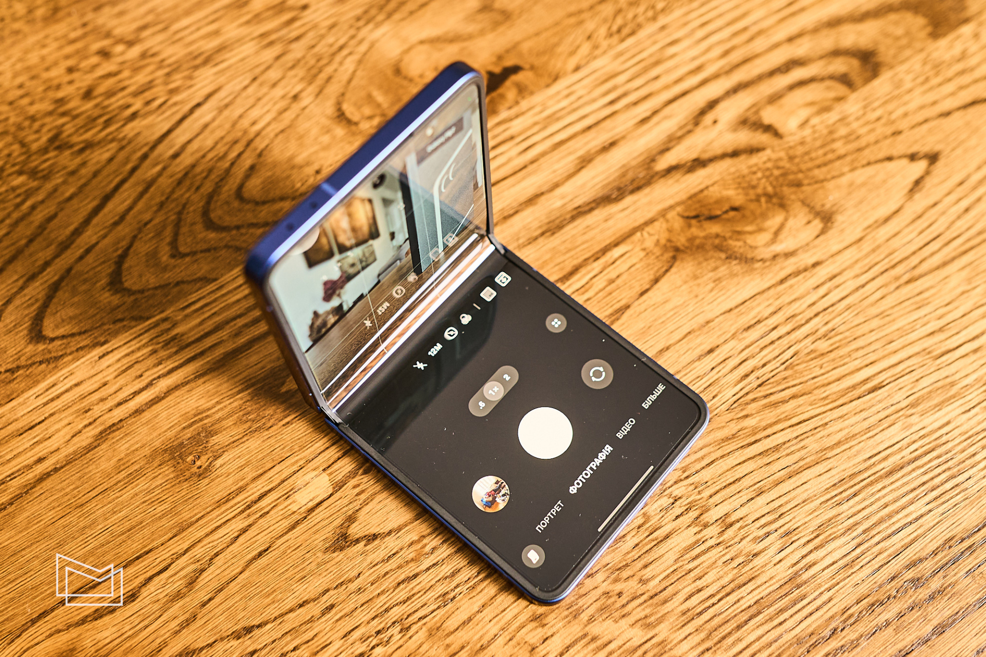 Повертаючись до плюсів такої конструкції, варто згадати, що у напівзігнутому стані смартфон не потрібно тримати для певних операцій: під час відеодзвінків, чи знімання фото та відео. Смартфон не потребує штатива для подібних задач. Камера має функцію автоматичного наближення необхідного об’єкта та автовибору кута знімання для колективних селфі.