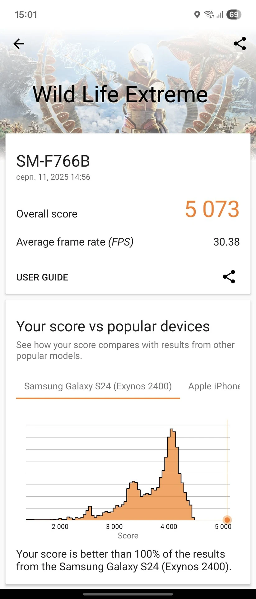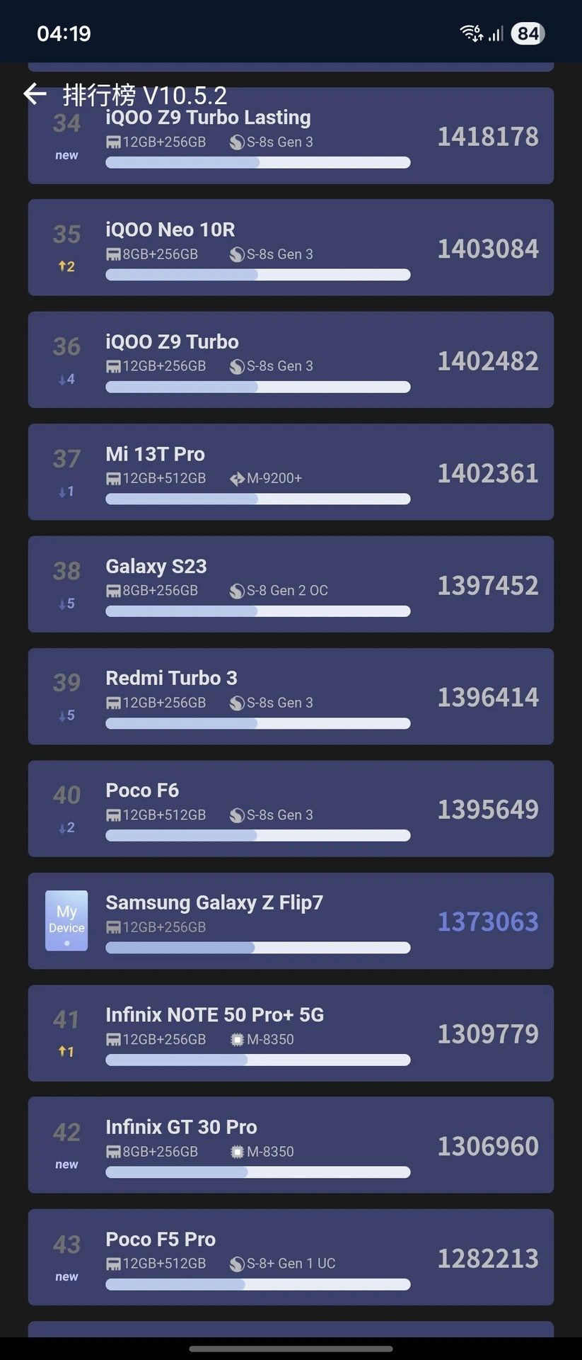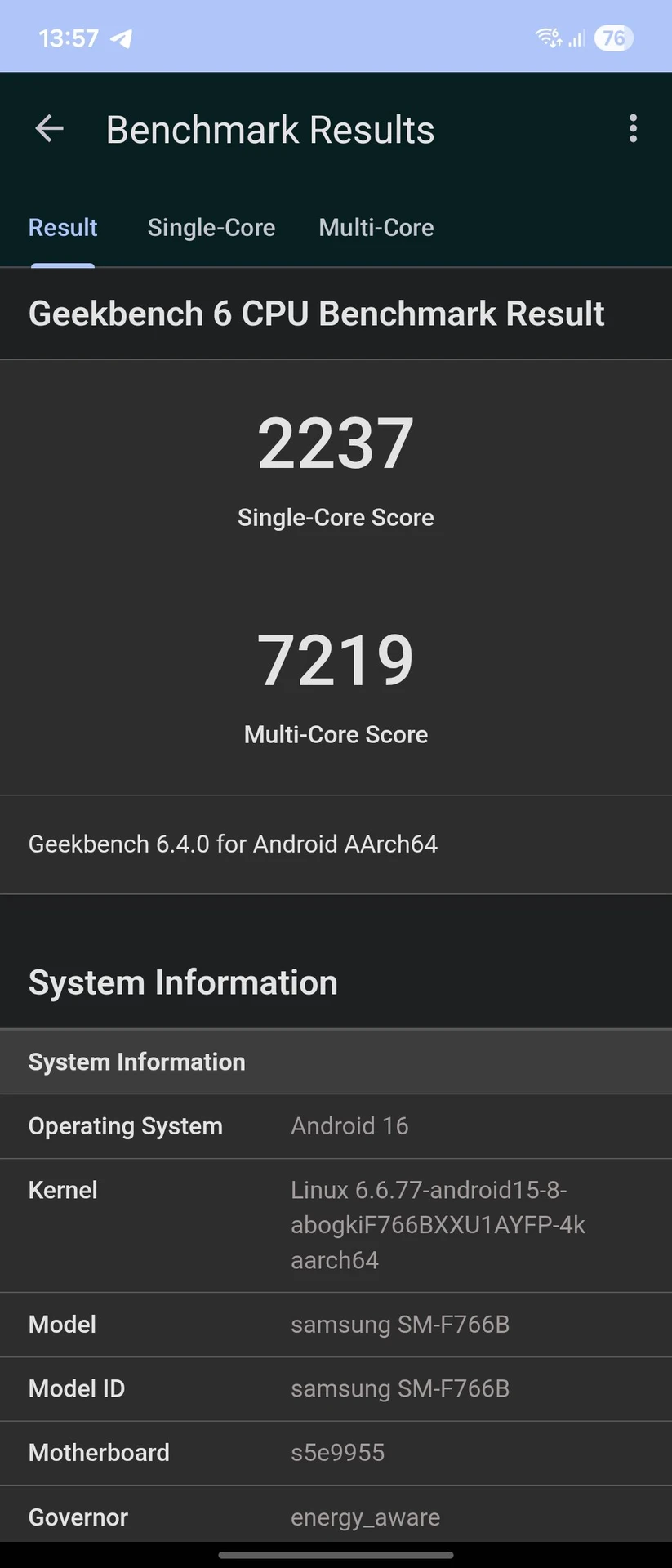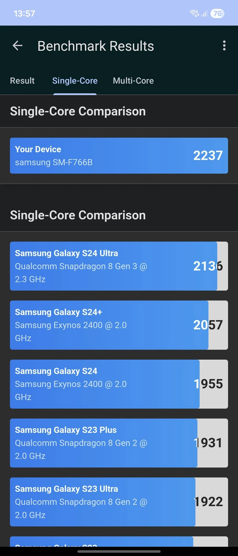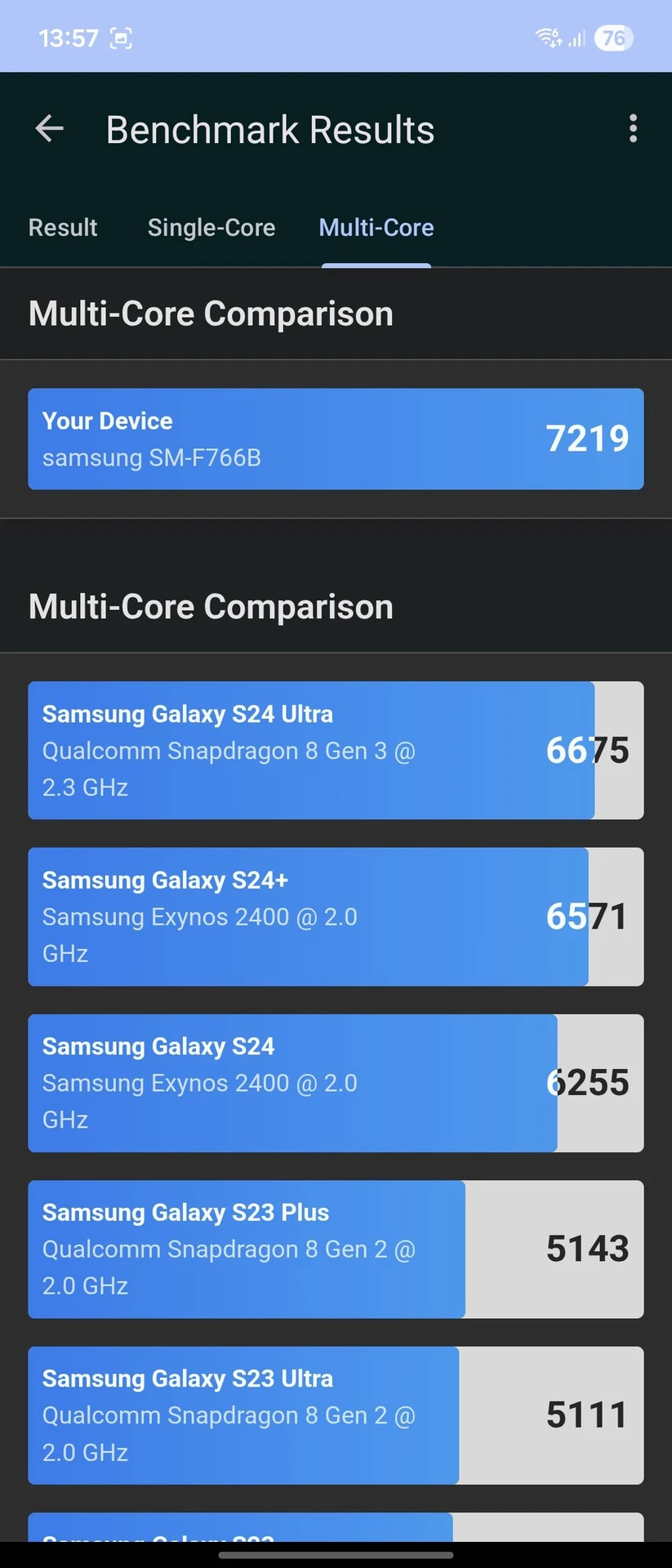 У бенчмарках Samsung Galaxy Flip7 демонструє непогані, хоча і далекі від флагманів показники. Вони дуже близькі до минулої моделі на Qualcomm Snapdragon 8 Gen 3. Лише у деяких тестах новий процесор Samsung трохи попереду: