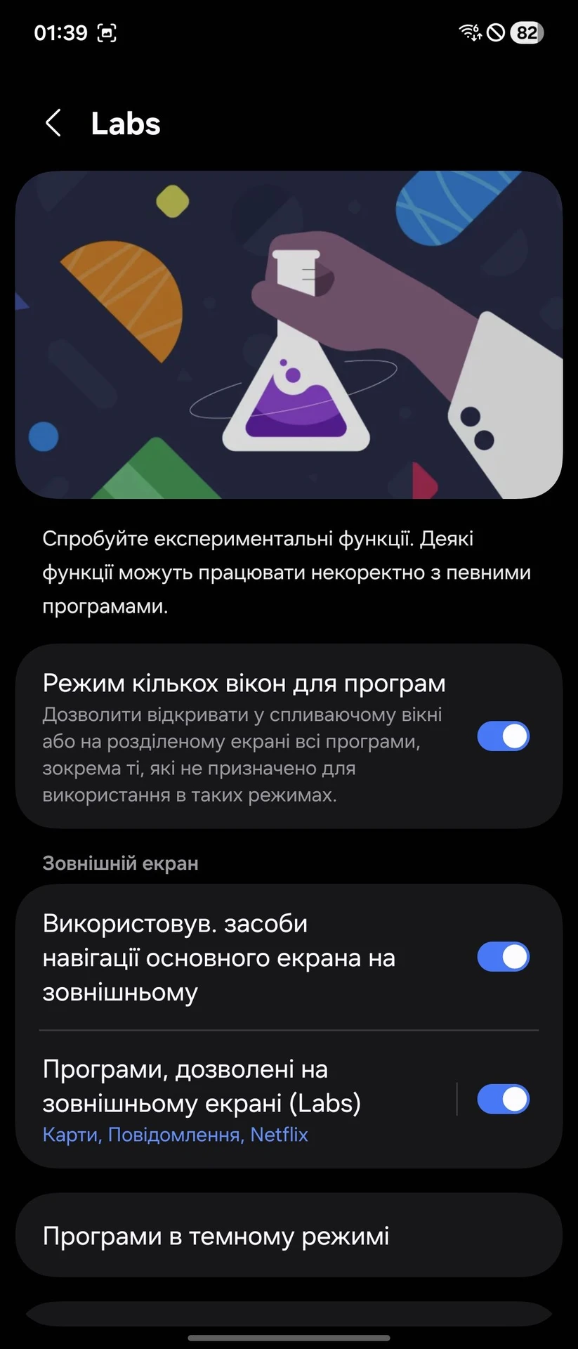 Окремо варто зазначити, що Samsung Galaxy Flip7 — перший смартфон лінійки Flip, що підтримує десктопний режим Dex. Смартфон можна під'єднати кабелем (якщо є відповідний), або за допомогою Miracast. Екран можна використовувати у якості тачпада, або під'єднати Bluetooth-клавіатуру та мишку. На жаль, під час тестування ні кабелю, ні телевізора з Miracast у доступі не було, тому протестувати не вдалось.
