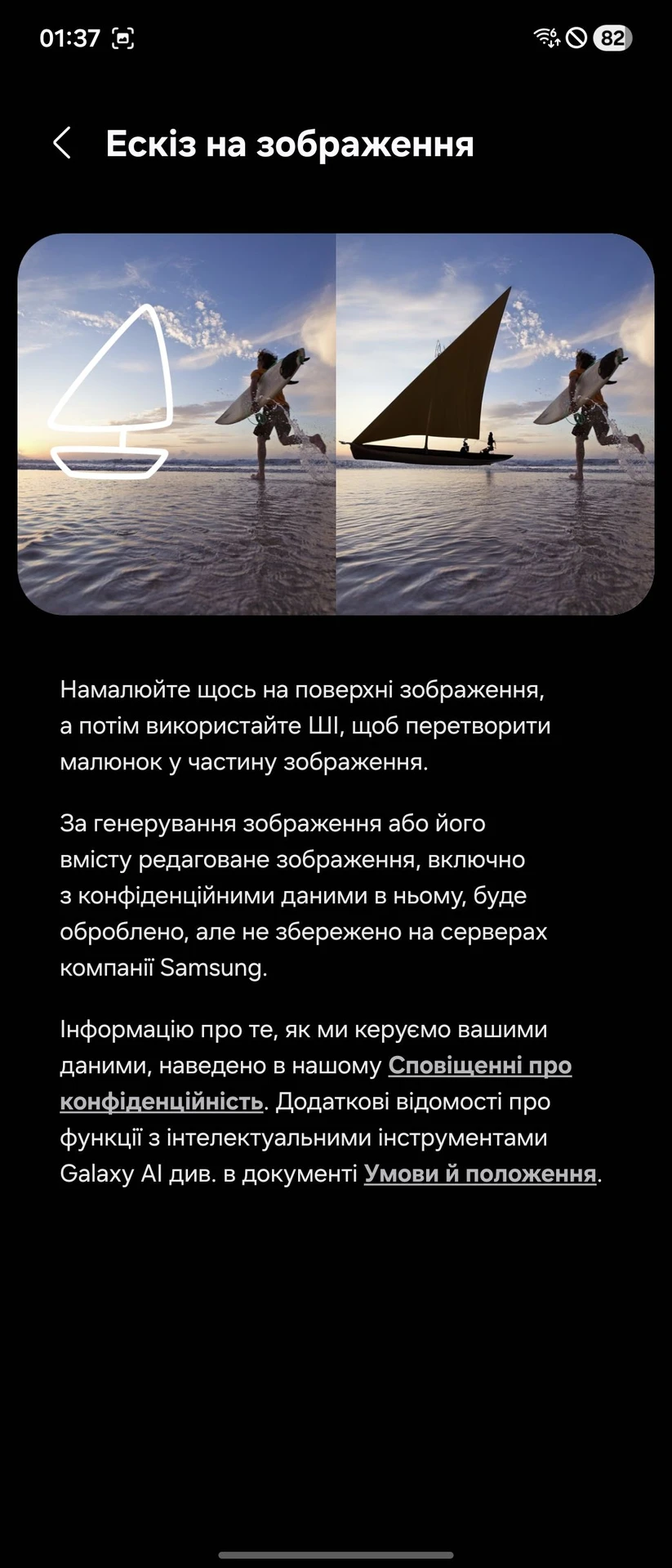 Samsung продовжує розвивати свою ШІ-платформу Galaxy AI. Можливостей багато: переклад телефонних розмов в режимі реального часу, допомога при написанні текстів Chat Assist, автоматичне форматування тексту, генерування коротких підсумків з великих текстів з основними тезами, генерування шпалер, зображень на основі скетчу, покращення при роботі з камерою, можливість пошуку в Google об’єктів на екрані тощо.