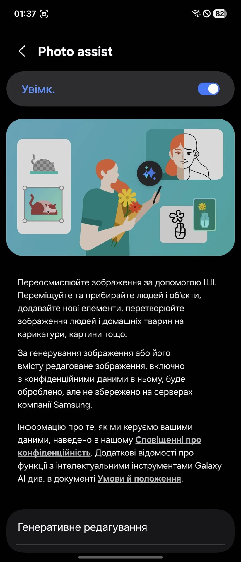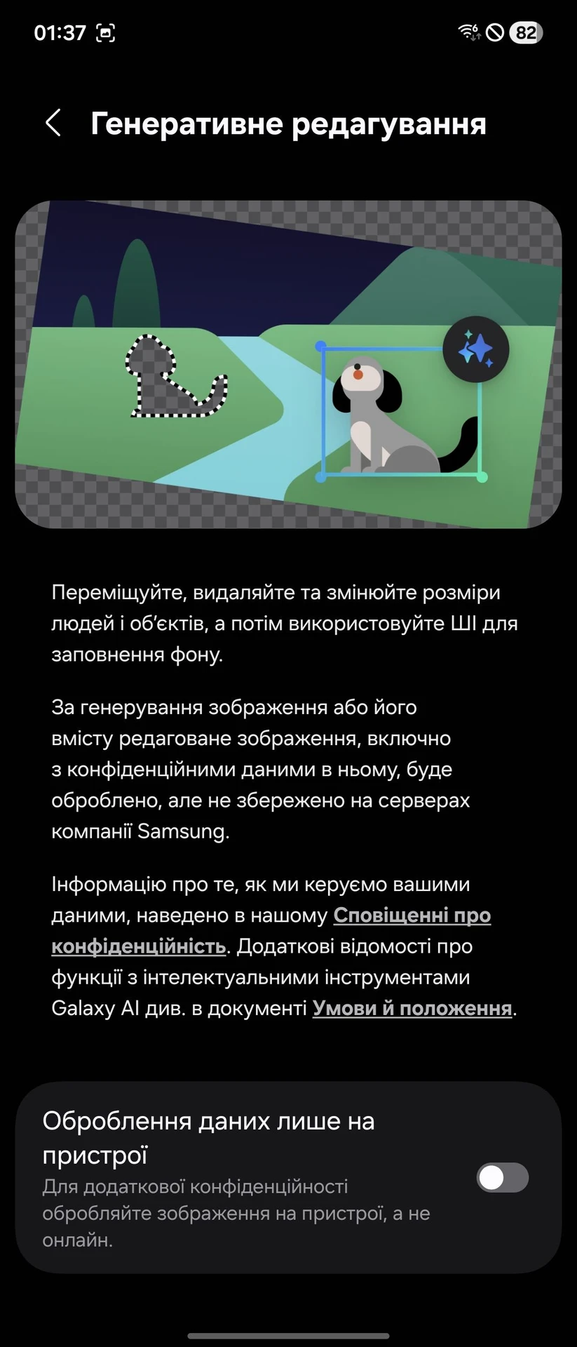 Є можливість обробки виключно на смартфоні. На жаль, поки що практично усі функції, що пов’язані з голосом та текстом не мають підтримки української мови. В той час, коли також доступний на смартфоні Gemini вже давно підтримує.