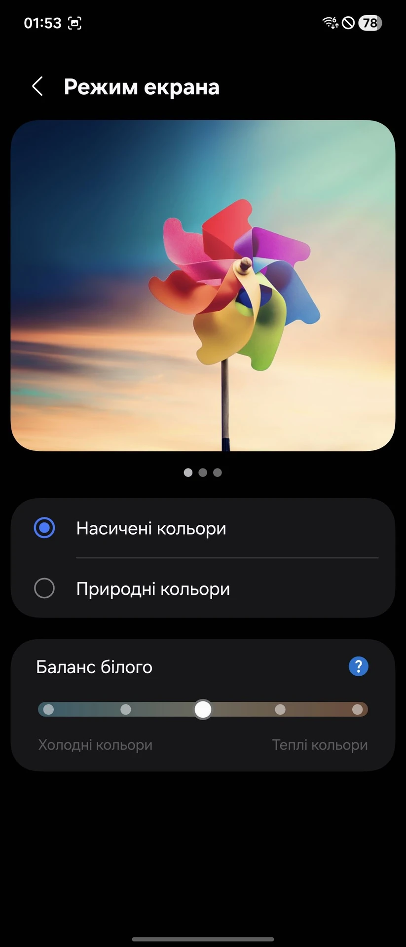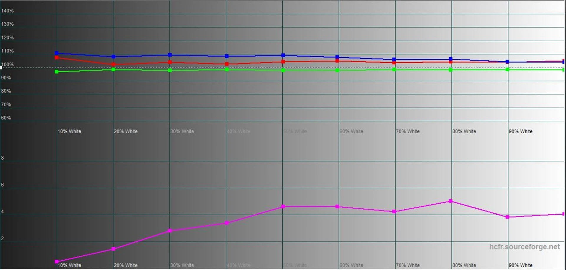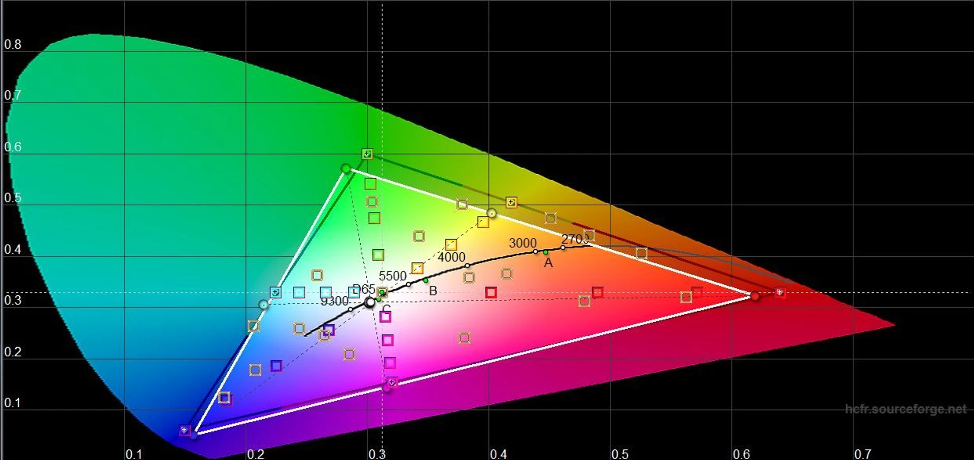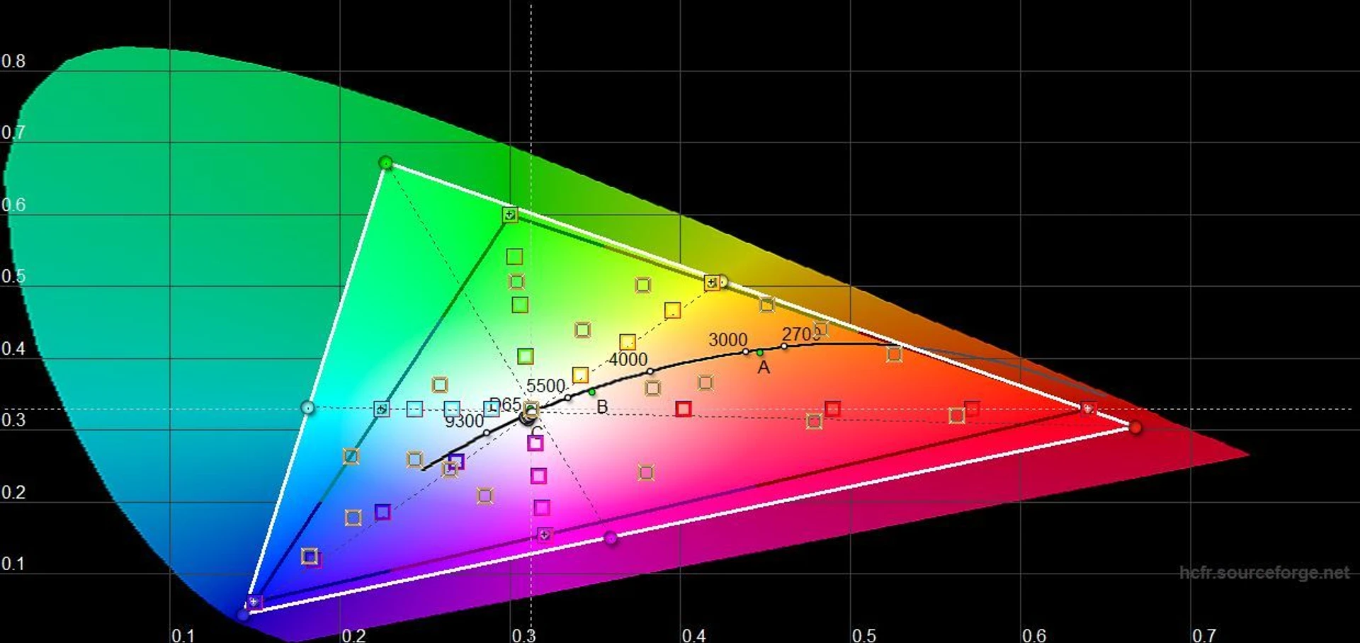 У "Природному" режимі максимальна яскравість складає 735.591 кд/м², але точність передачі кольорів трохи нижча. При цьому, охоплення кольорів близьке до sRGB: