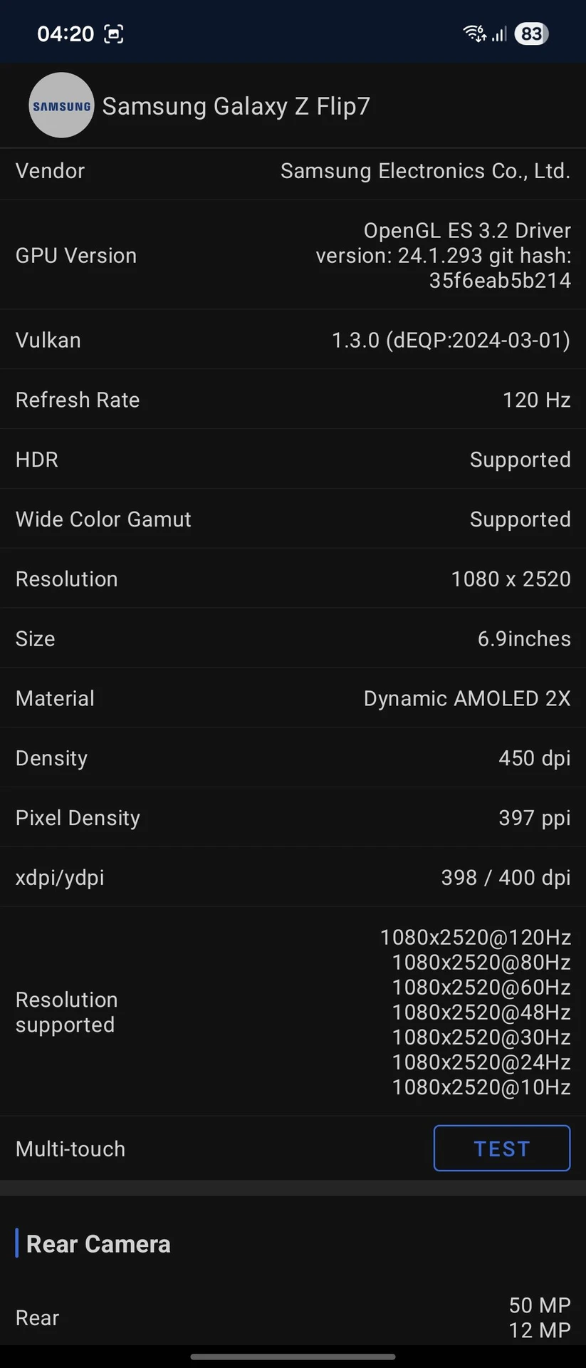 Зовнішній дисплей збільшився з 3,4 до 4,1 дюйма, він має майже квадратну форму. Роздільна здатність складає 1048х948, піксельна щільність 342 PPI. Використовується Super AMOLED-матриця. Максимальна частота оновлення збільшилась до 120 Гц. Але, на відміну від внутрішнього LTPO Dynamic AMOLED, підтримує адаптивну частоту не від 1, а від 10 Гц. Заявлена пікова яскравість 2600 кд/м². Екран дійсно яскравий, проблем на сонці не виникає.